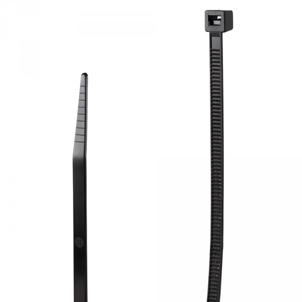 Brida de poliamida 6.6 negra para sujetar cables de 2,5mm de ancho y 200mm de largo. Diámetro máximo de uso 55mm. Temperatura de utilización -40ºC a +85ºC. Ratio de flamabilidad 94 V-2.