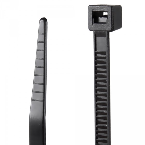 Brida de poliamida 6.6 negra para sujetar cables de 4,8mm de ancho y 360mm de largo. Diámetro máximo de uso 100mm. Temperatura de utilización -40ºC a +85ºC. Ratio de flamabilidad 94 V-2.
