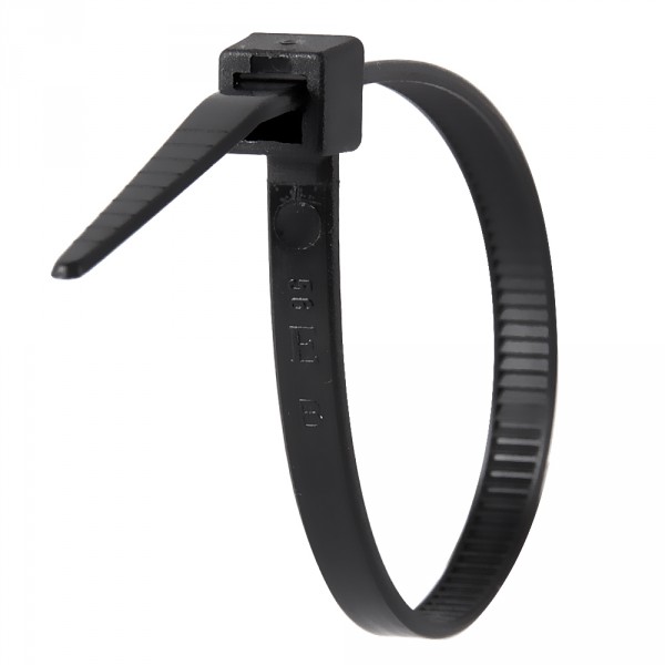 Brida de poliamida 6.6 negra para sujetar cables de 4,8mm de ancho y 430mm de largo. Diámetro máximo de uso 125mm. Temperatura de utilización -40ºC a +85ºC. Ratio de flamabilidad 94 V-2.