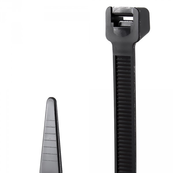 Brida de poliamida 6.6 negra para sujetar cables de 7,8mm de ancho y 200mm de largo. Diámetro máximo de uso 55mm. Temperatura de utilización -40ºC a +85ºC. Ratio de flamabilidad 94 V-2.