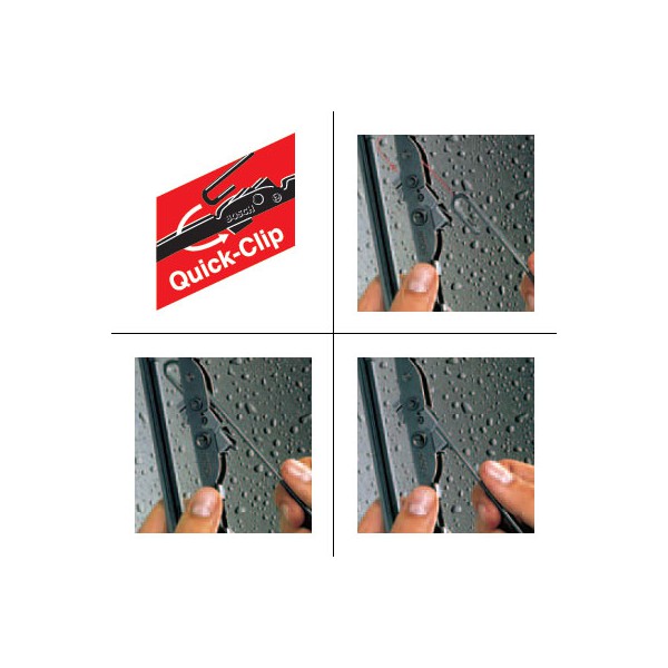 El adaptador Quick-Clip premontado de Bosch permite un cambio rápido de los limpiaparabrisas, seguridad y precisión.